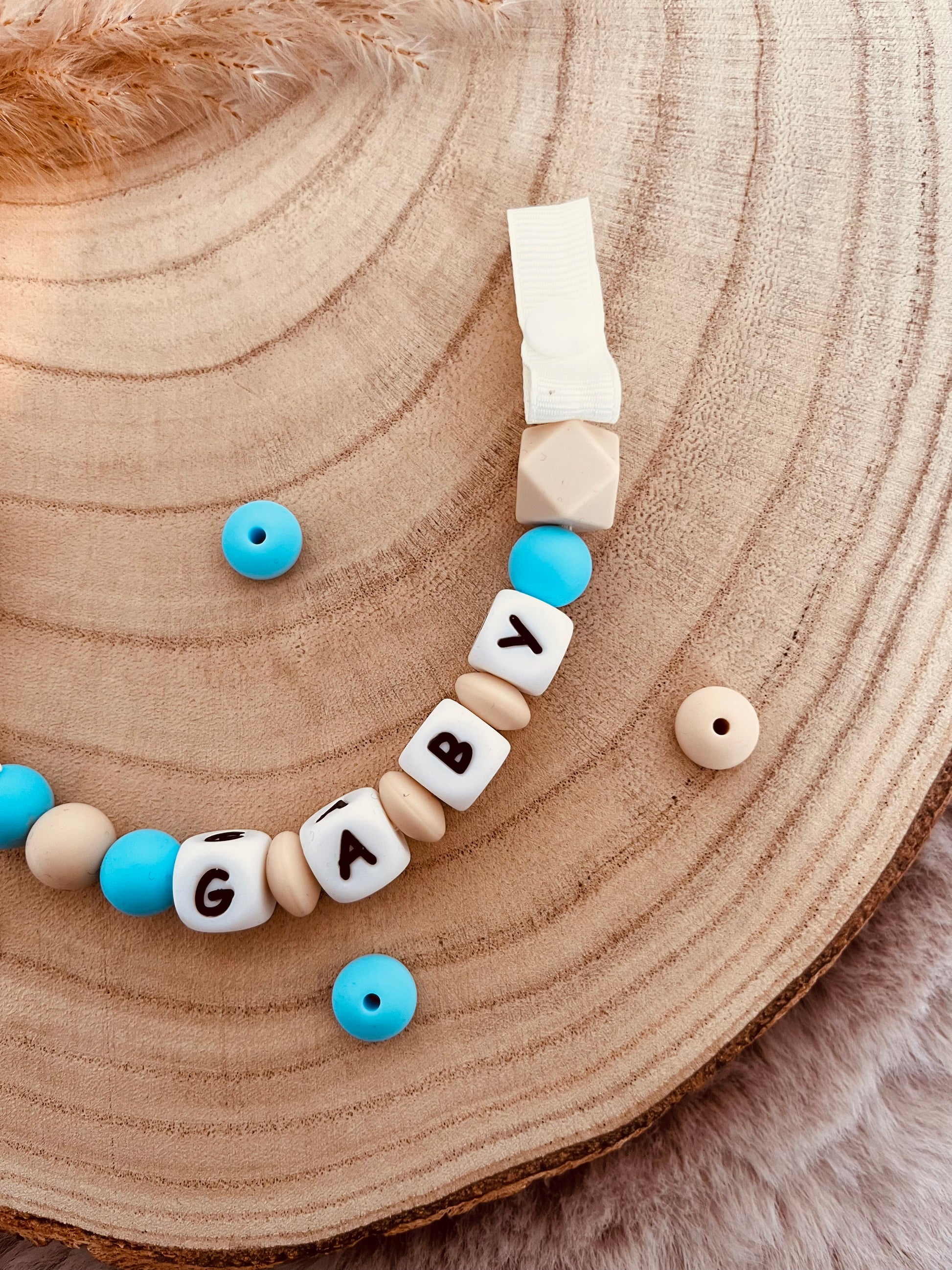 Der Schnullerclip kann je nach Vornamen variieren, um den geltenden Normen für die frühe Kindheit NFEN 12586 zu entsprechen.