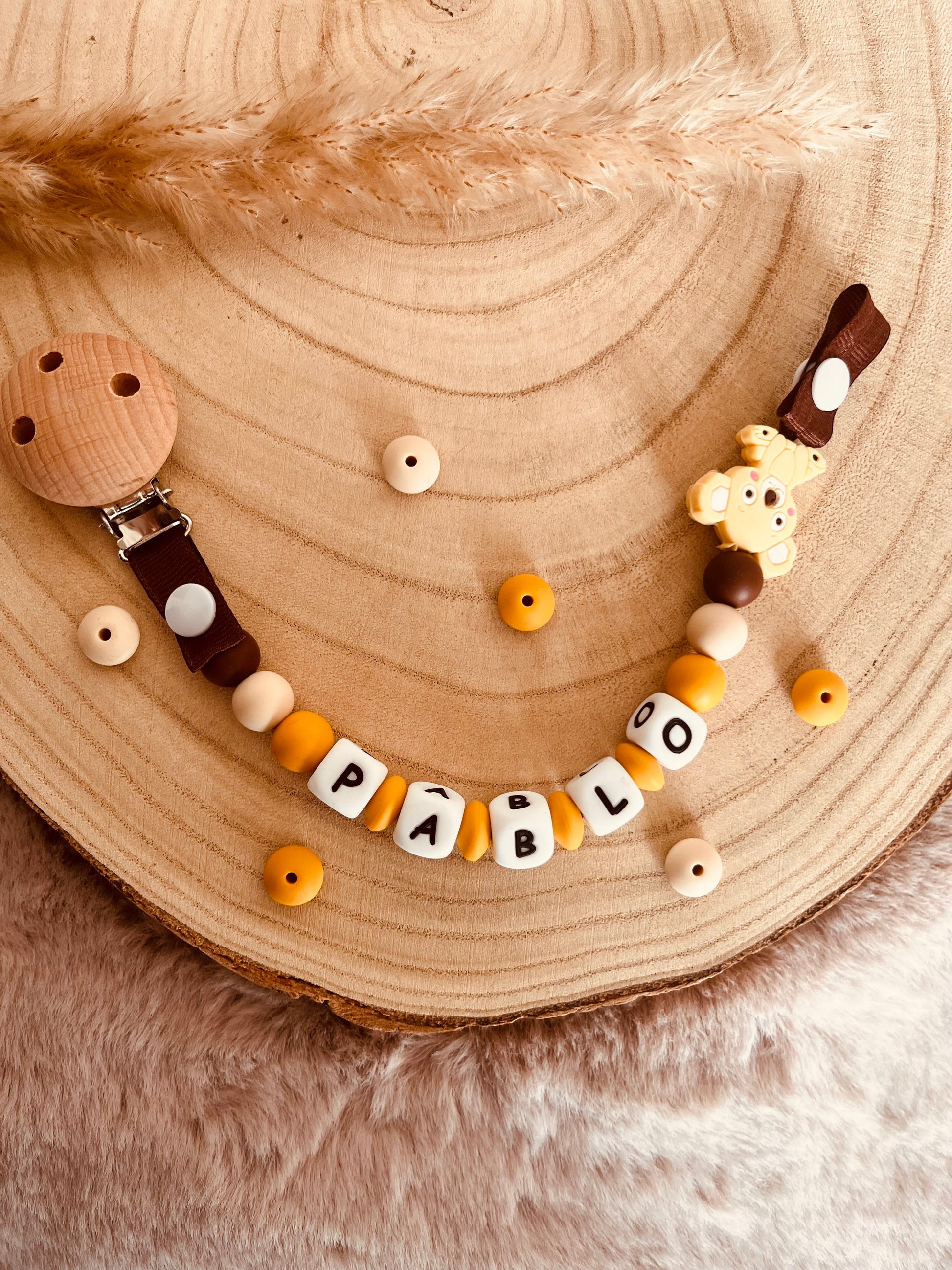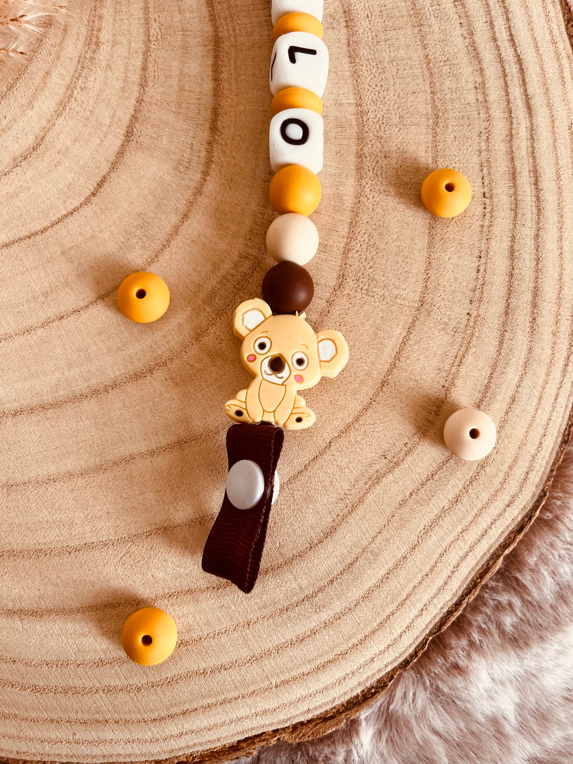 Ajoutez une touche de douceur et d'originalité au quotidien de bébé ! ✨ Cette attache tétine personnalisable, avec son adorable petit koala et son clip en bois, est l'accessoire parfait qui allie style et praticité.