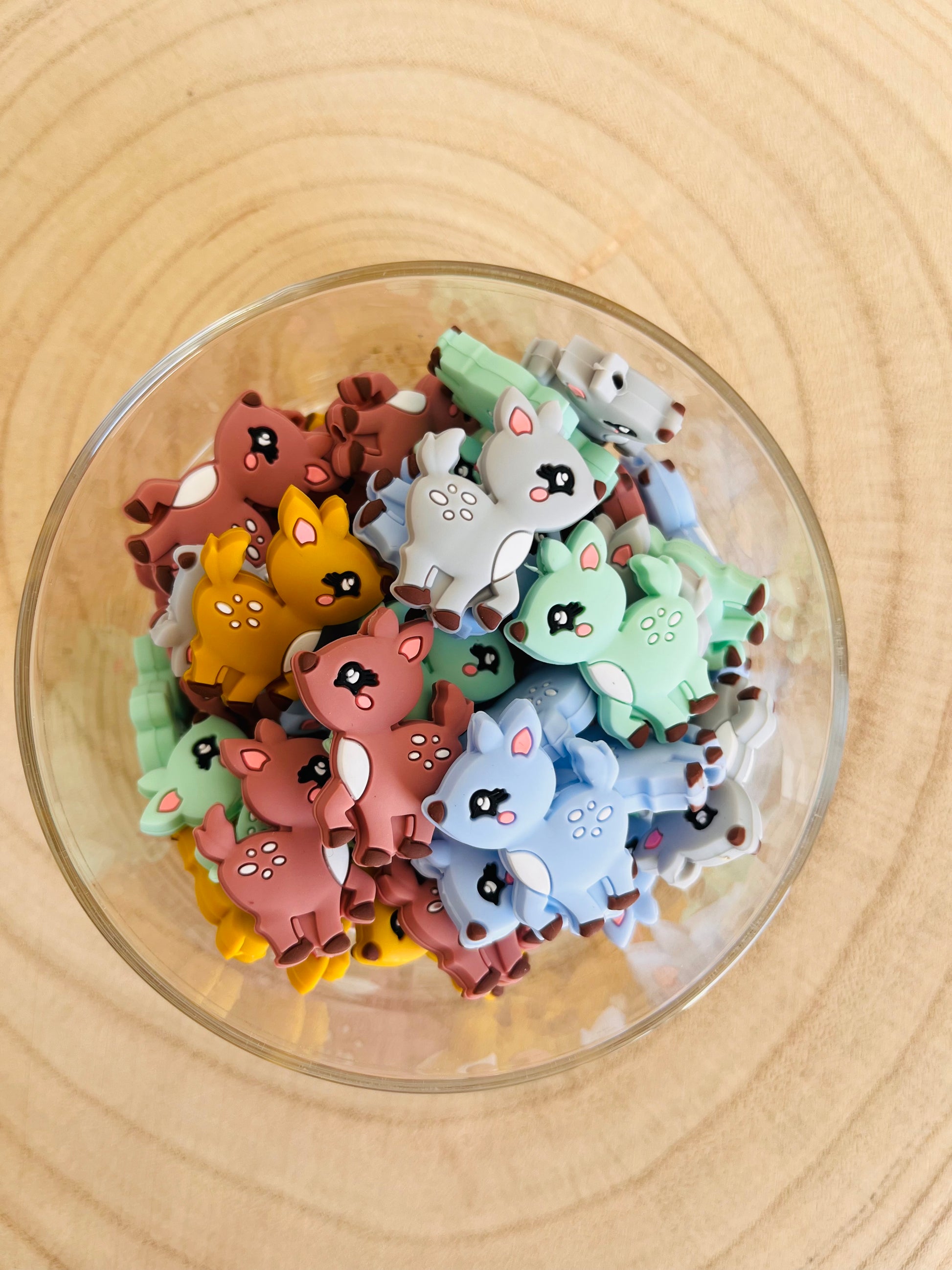 Ajoutez une touche de tendresse et de fantaisie à vos créations avec notre adorable perle en silicone en forme de petite biche ! Parfaite pour la confection de hochets, attache-tétines, bracelets ou colliers de dentition, cette perle allie sécurité, douceur et style.