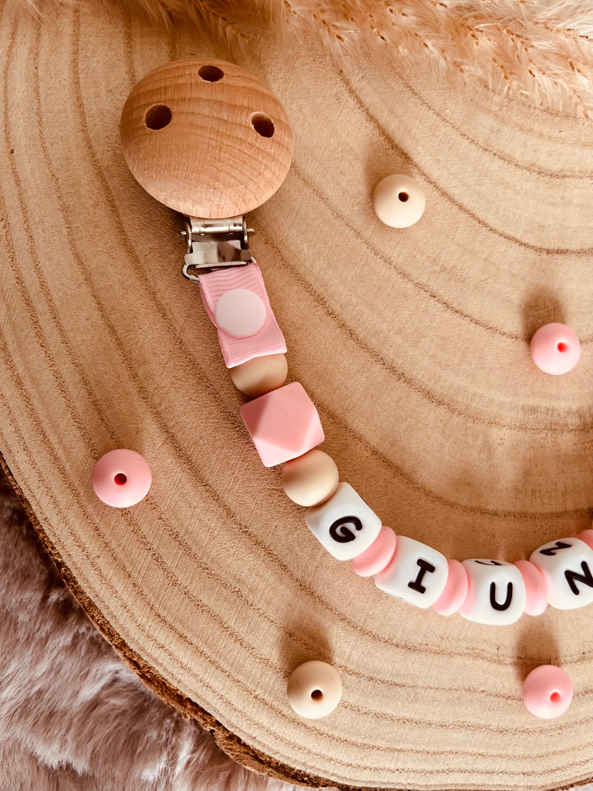 Cada uno de nuestros clips para chupetes personalizados está hecho a mano con materiales seguros para tu hijo en nuestro taller. El clip de chupete personalizado Se adhiere fácilmente a la ropa o baberos, garantizando que el chupete de tu bebé no se caiga al suelo, proporcionando una solución práctica e higiénica.