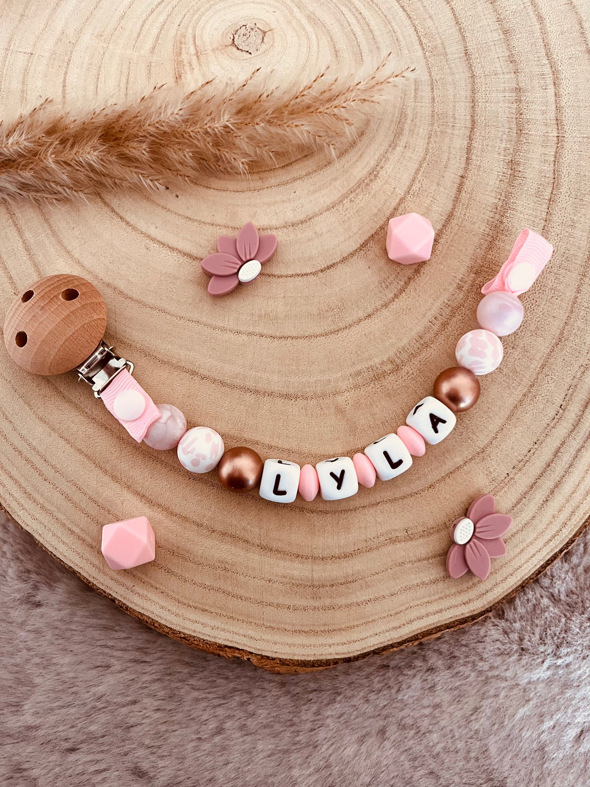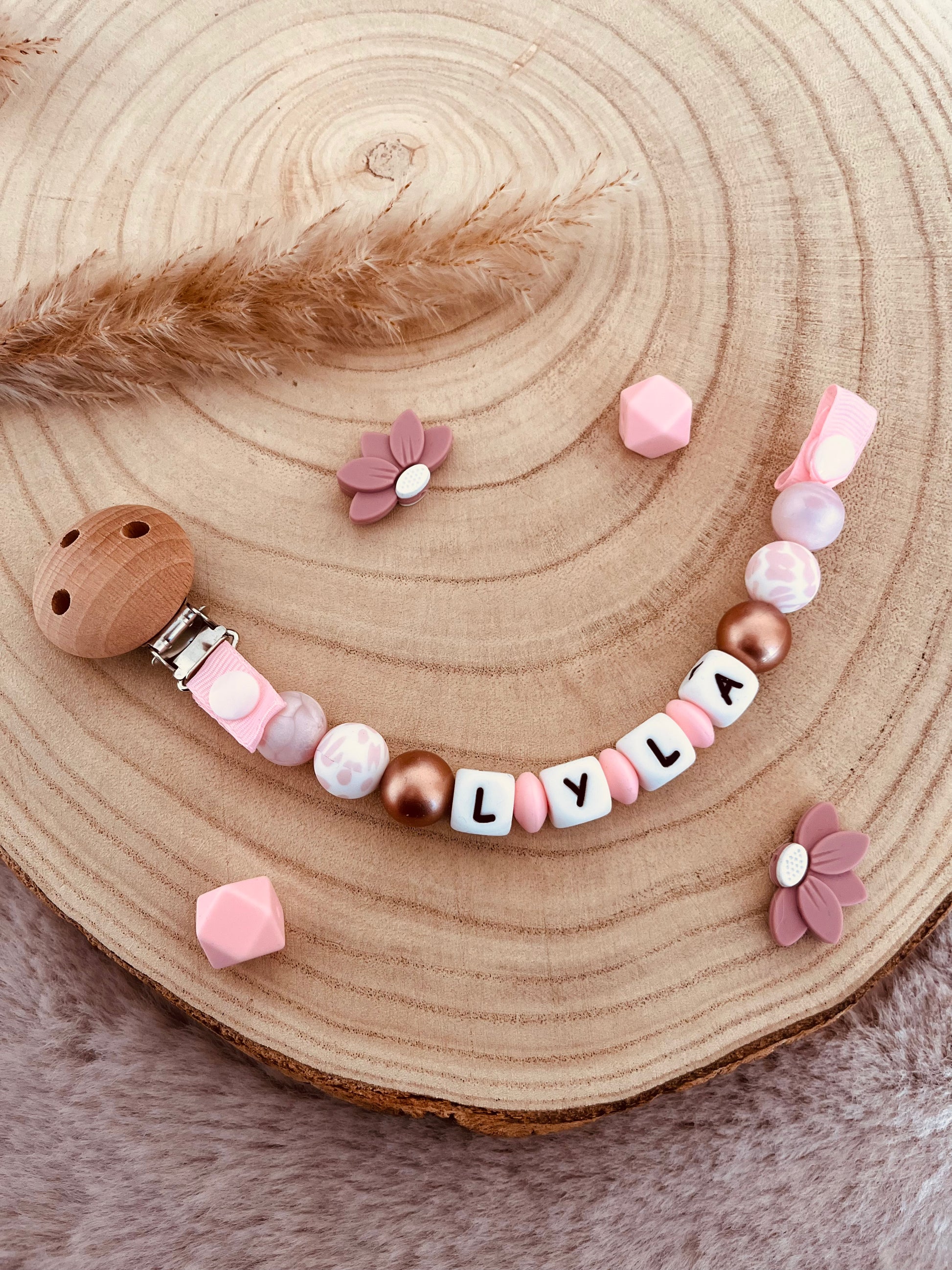 Nos attaches tétines sont réalisés à la main, dans notre atelier avec des matériaux sains pour l’enfant.
