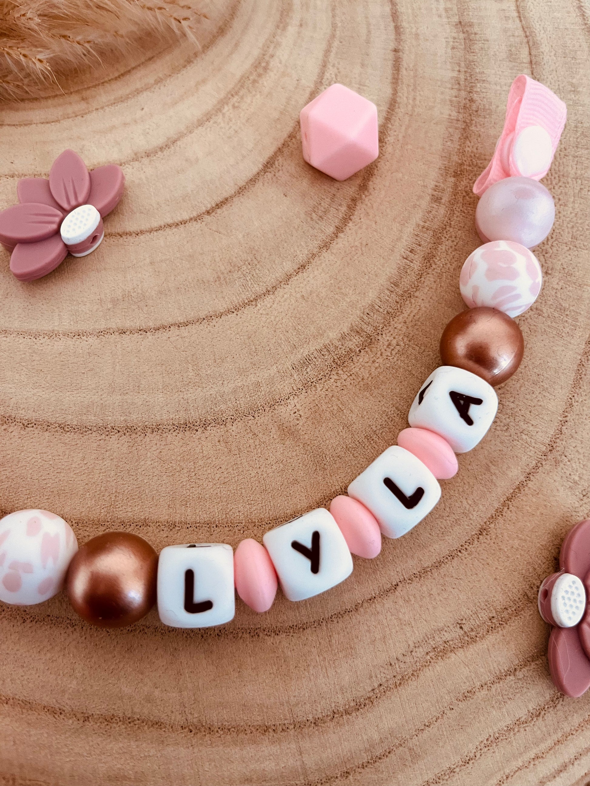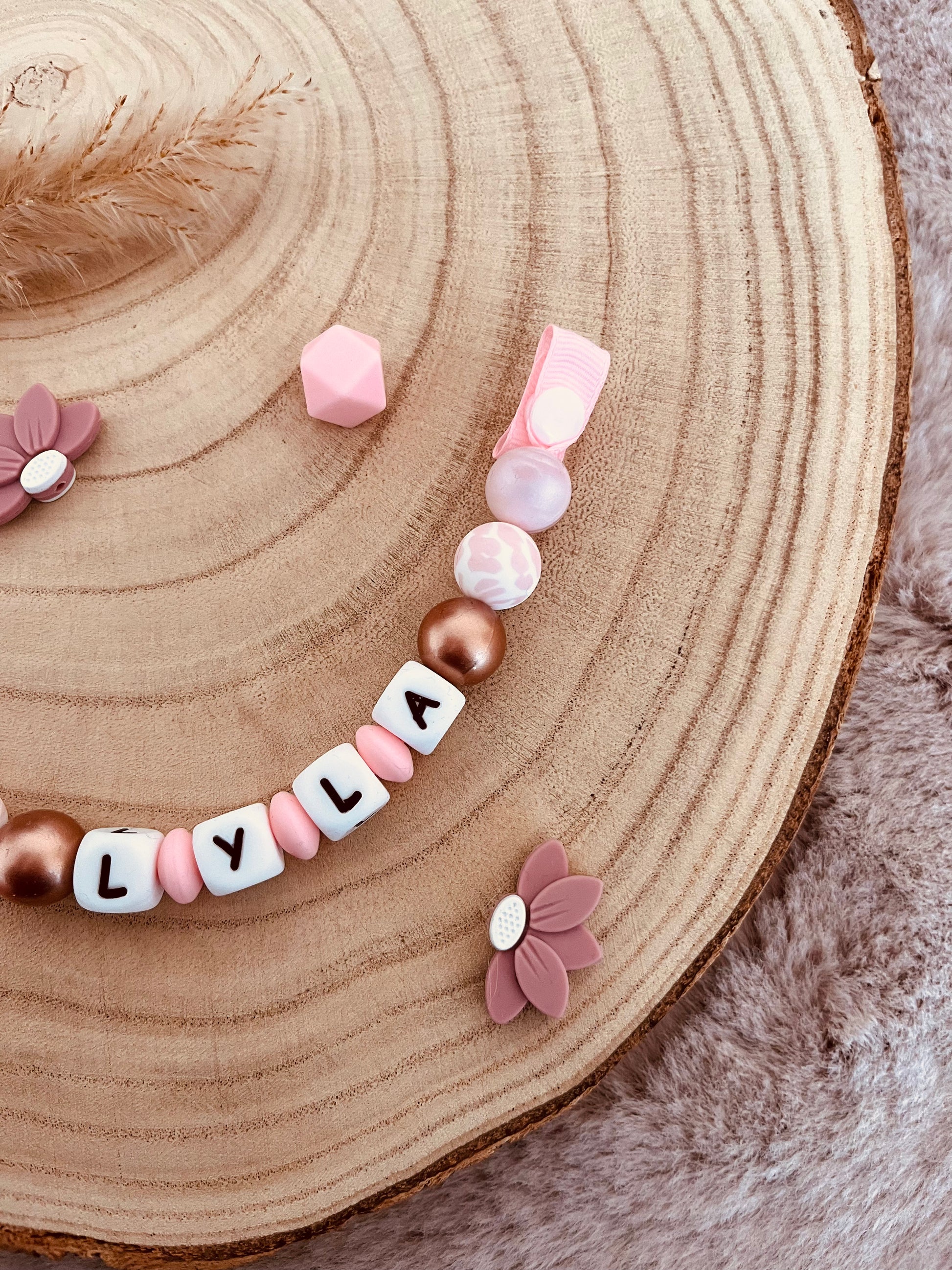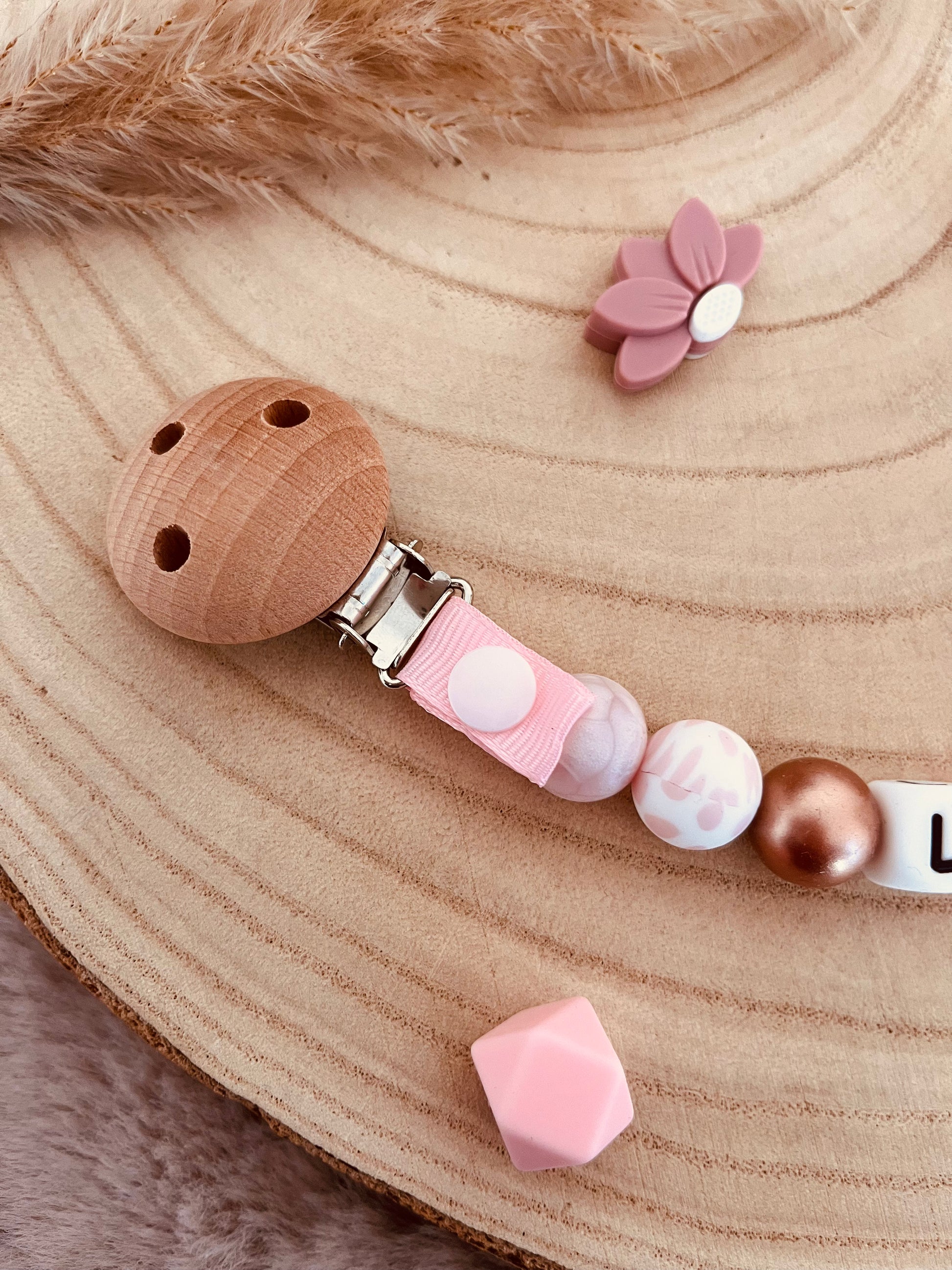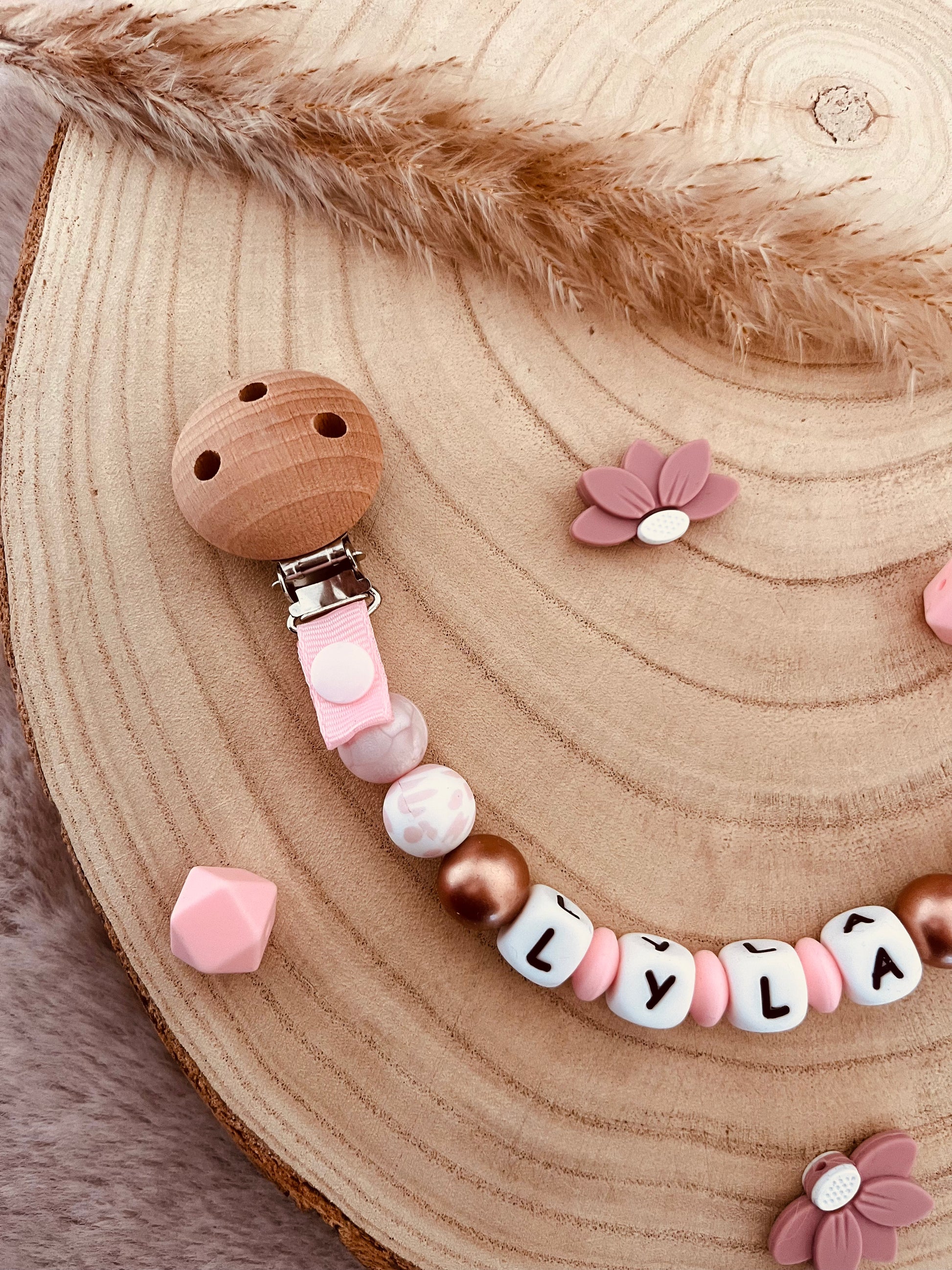L’attache tétine peut varier en fonction du Prénom pour répondre au normes en rigueur pour la petite enfance NFEN 12586.