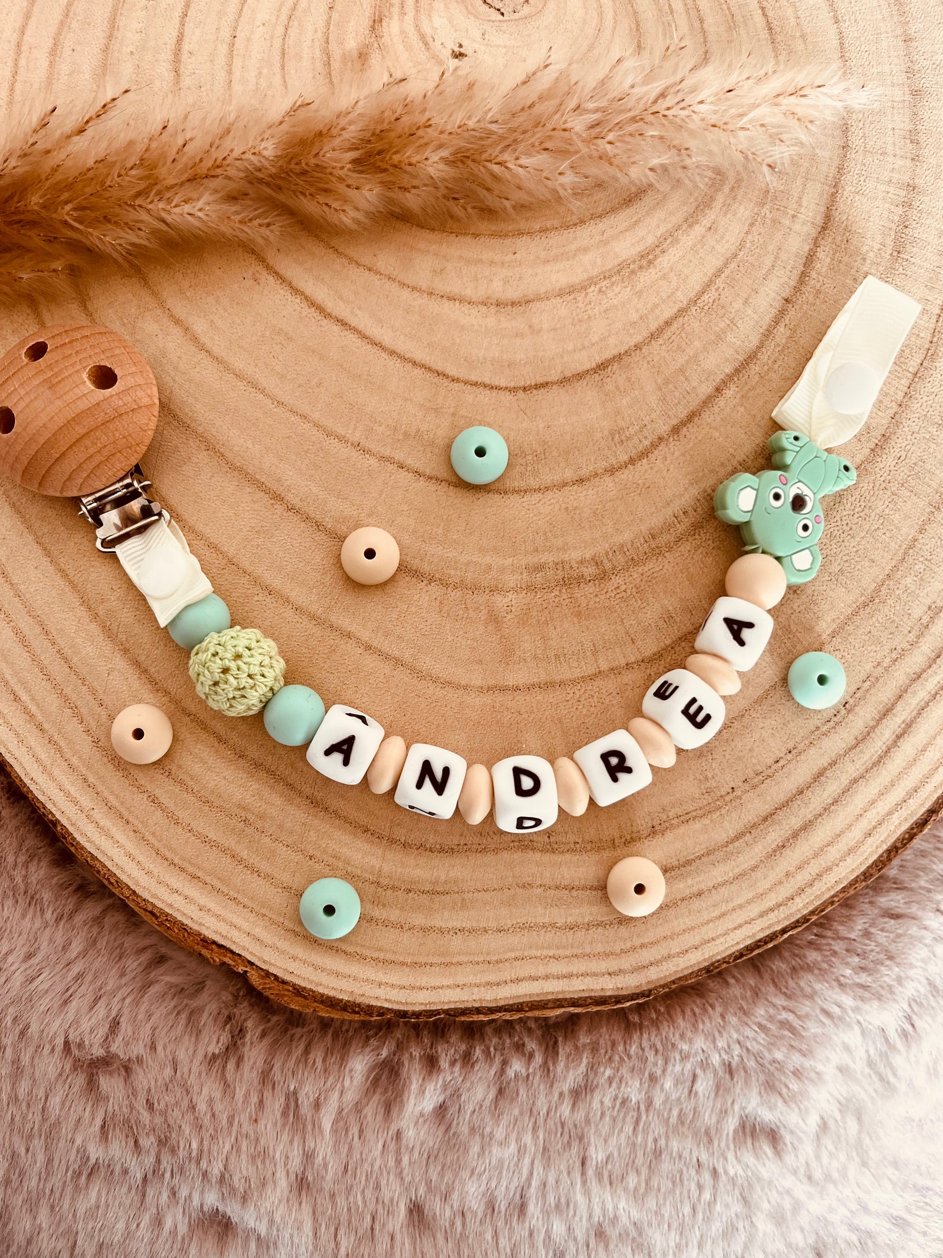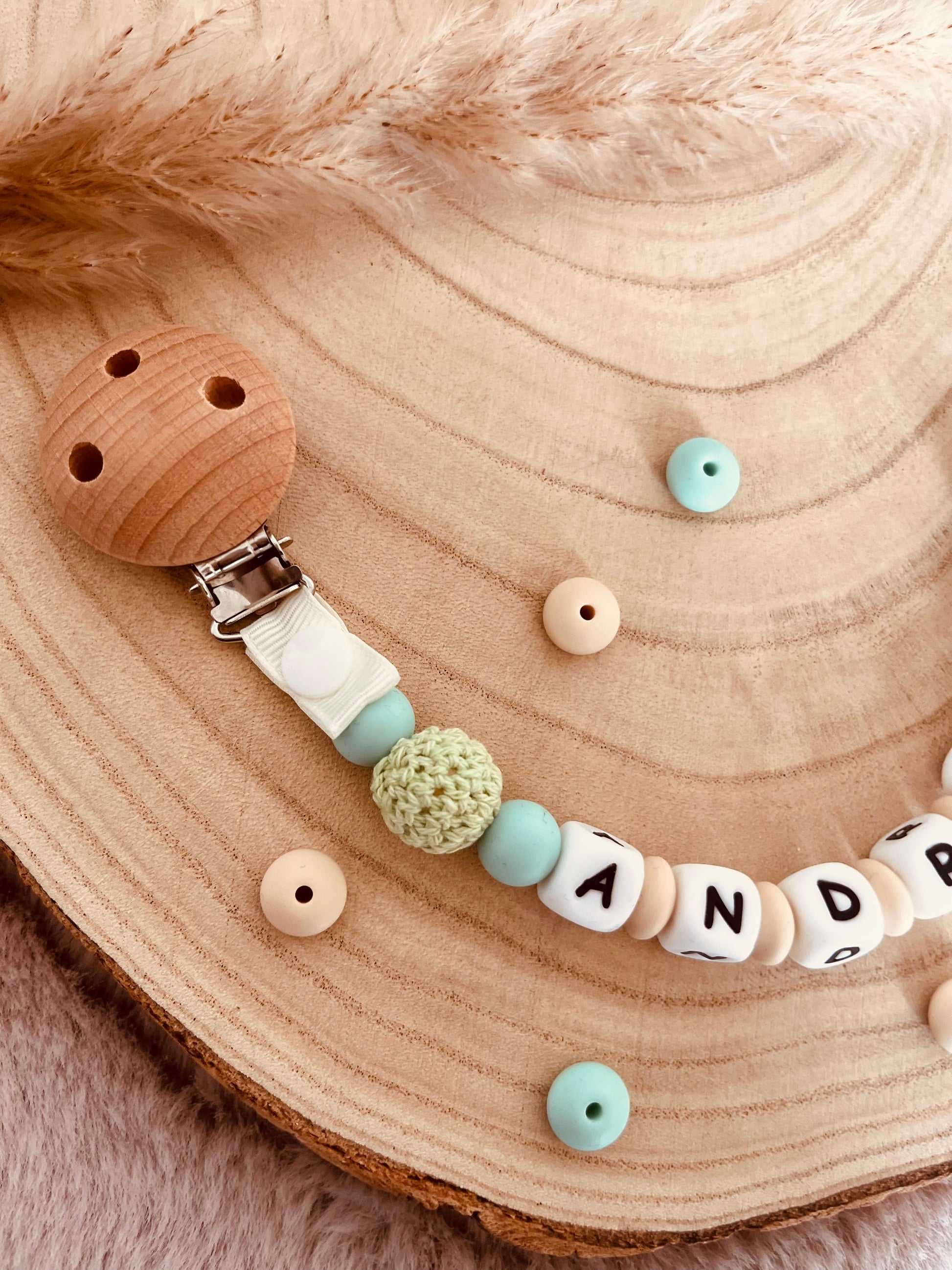 Personalizza questa clip con il nome del tuo bambino per renderla un regalo unico e speciale. Senza il nome, il prodotto sarà non personalizzato. L'attacco del ciuccio varia per assicurare la sicurezza secondo gli standard NFEN 12586.