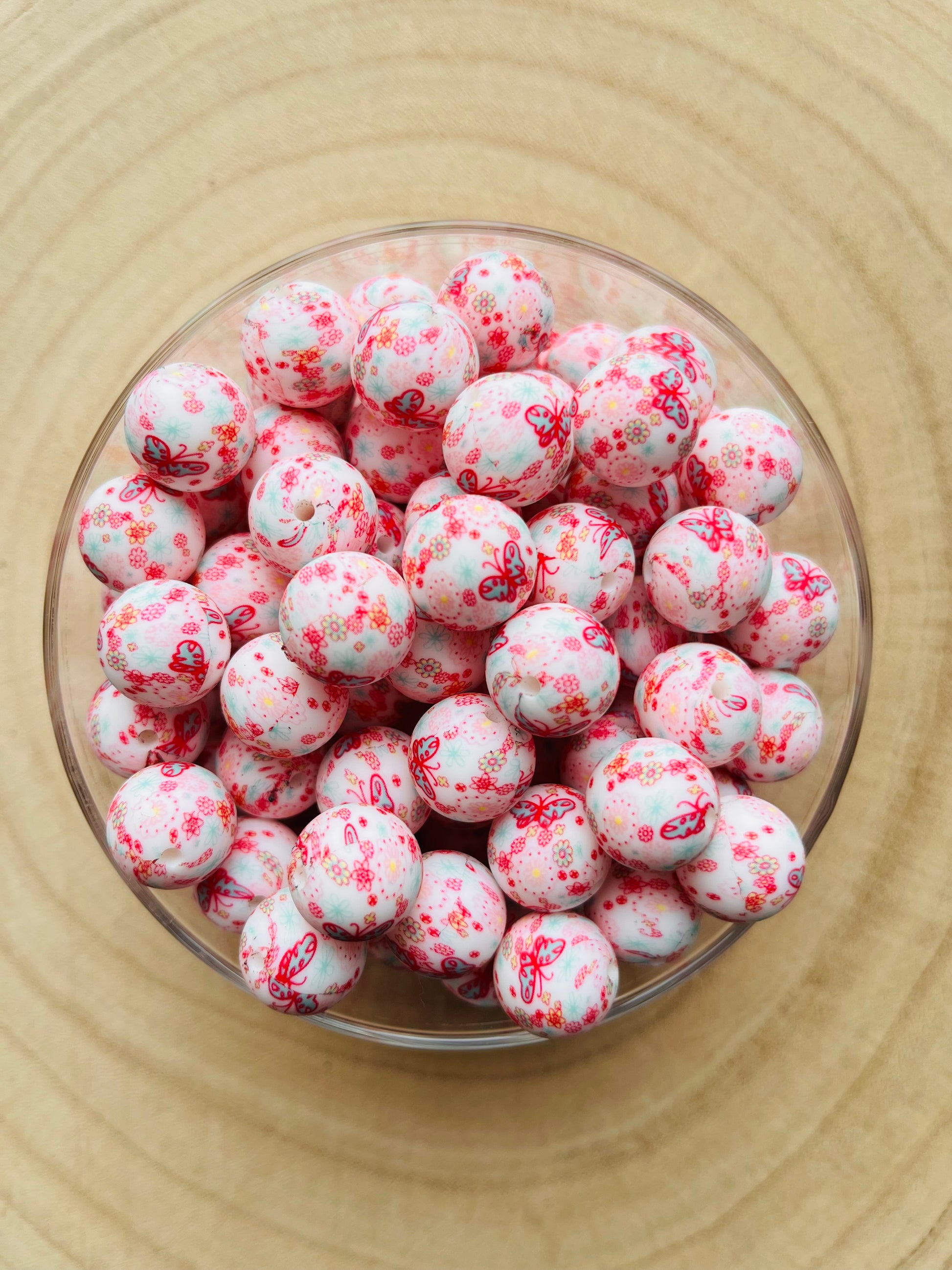Ajoutez une touche de fantaisie à vos créations avec cette perle en silicone de 15 mm. Son design unique avec un motif de papillons rose est idéal pour la confection d'accessoires uniques.
