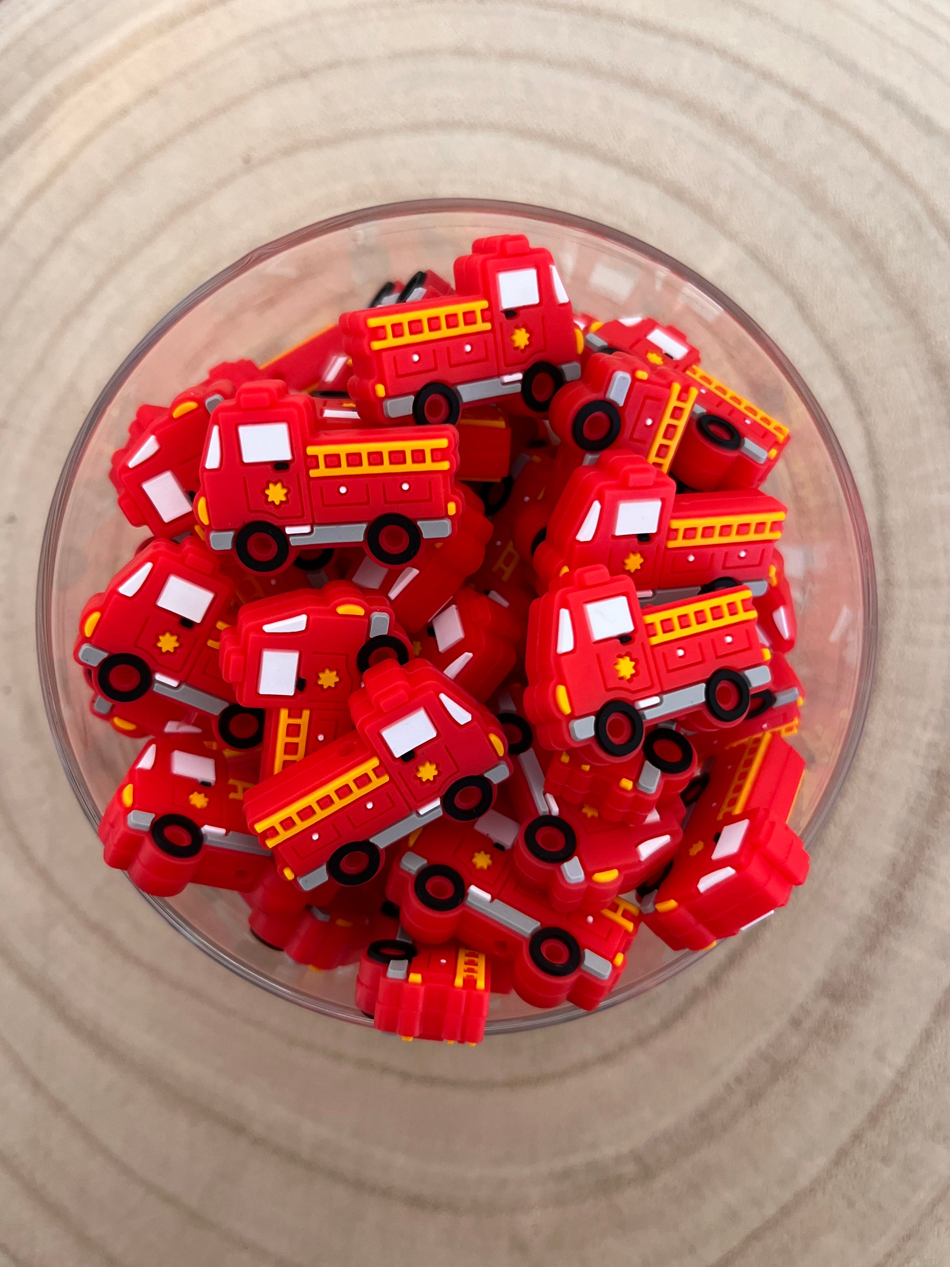 Faites briller les yeux des petits aventuriers avec notre perle en silicone en forme de camion de pompiers !