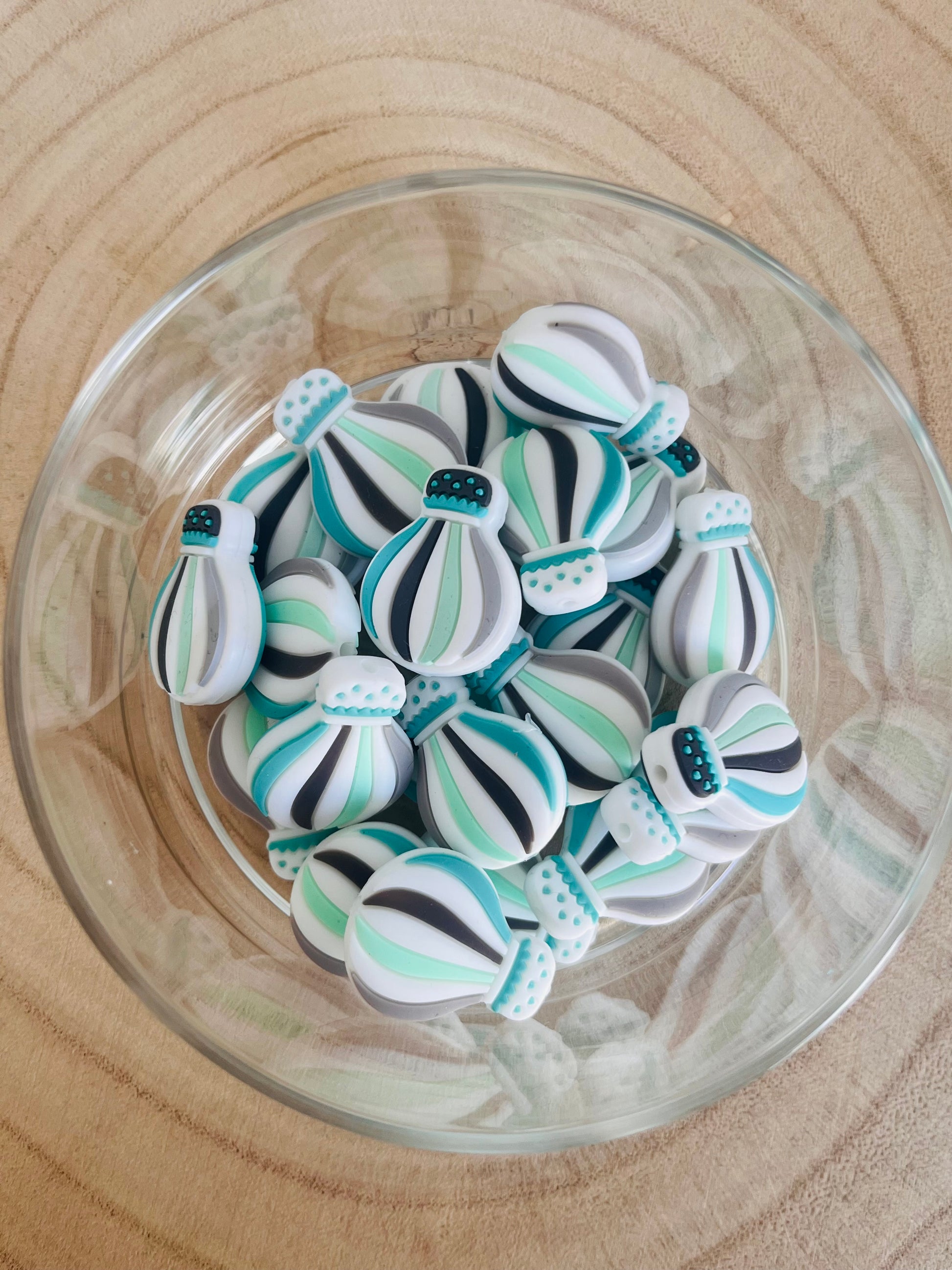 Ajoutez une touche de rêve et d'aventure à vos créations pour bébé avec cette perle en silicone en forme de montgolfière. Son design unique invite au voyage et est parfait pour créer des accessoires originaux et thématiques.