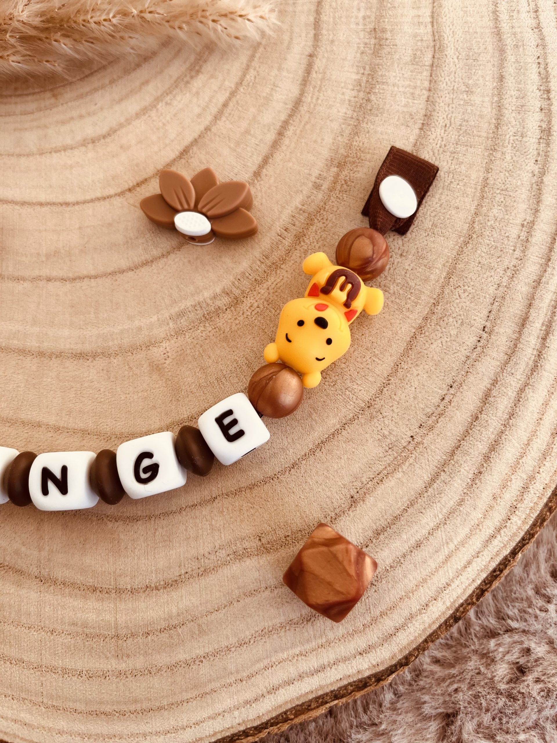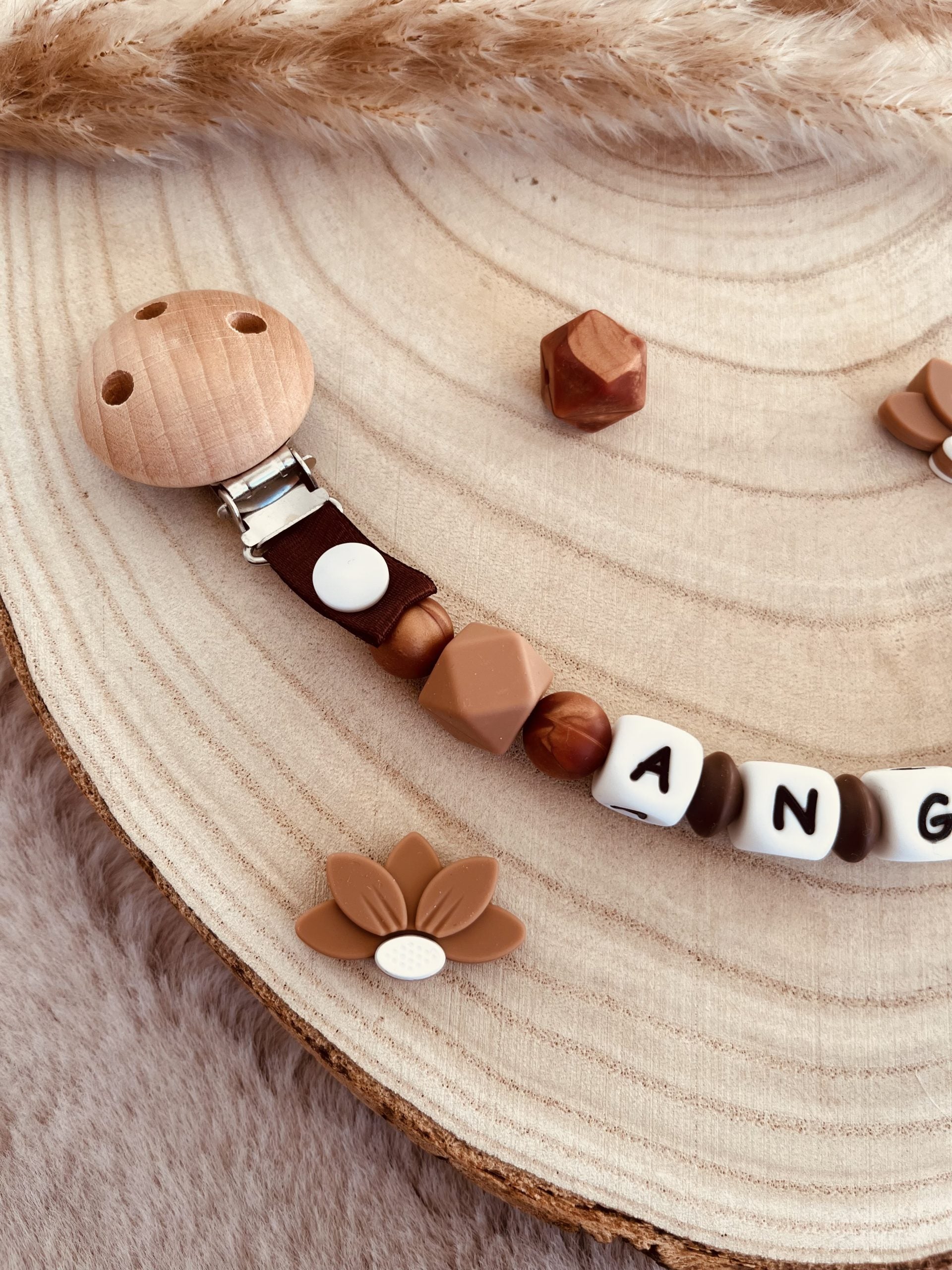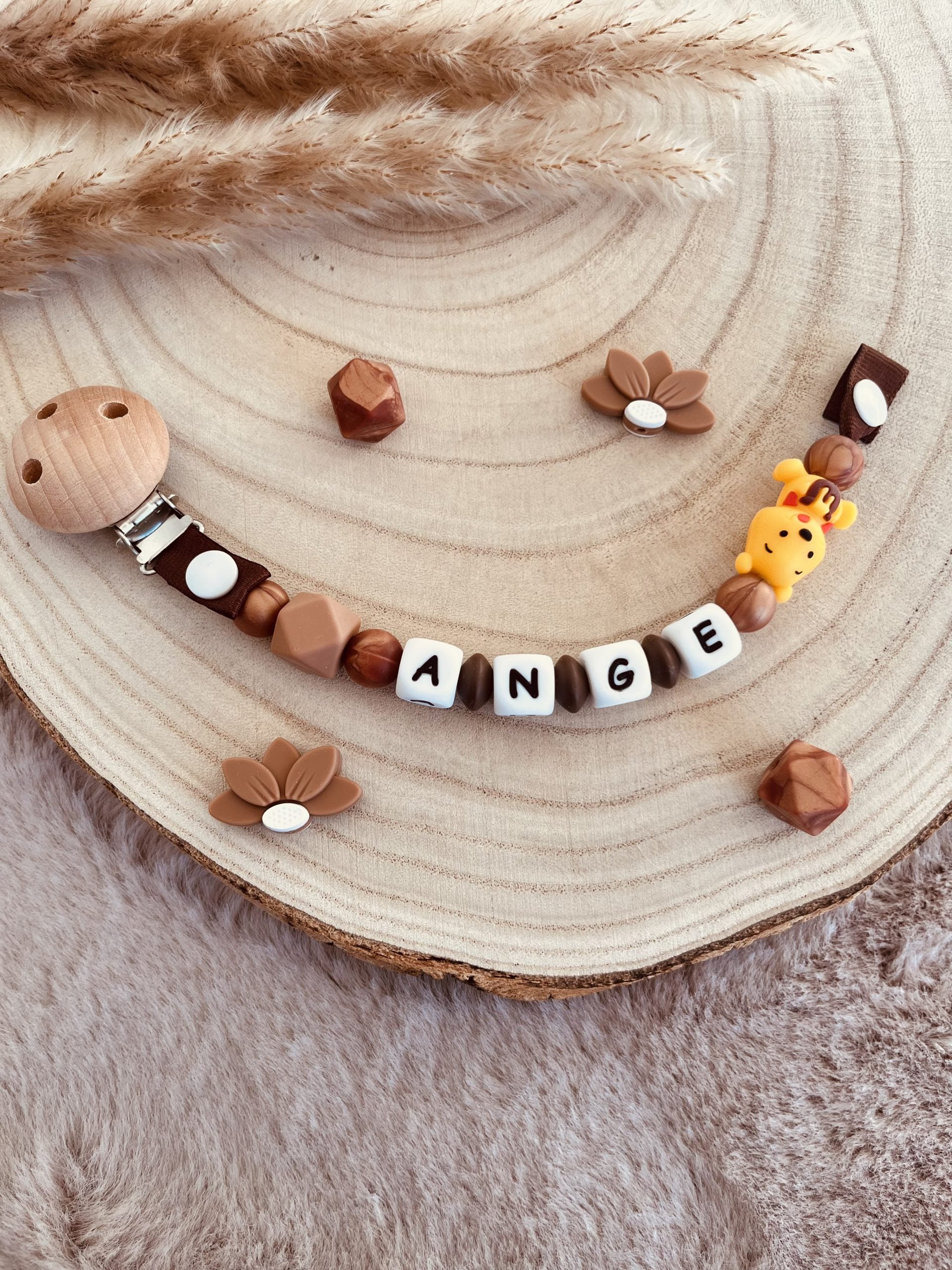 Chacune de nos attaches tétines personnalisée sont fabriquées à la main avec des matériaux sûrs pour votre enfant dans notre atelier. L’attache tétine personnalisée se fixe facilement sur les vêtements ou les bavoirs, garantissant ainsi que la tétine de votre bébé ne tombe pas par terre, offrant une solution pratique et hygiénique.