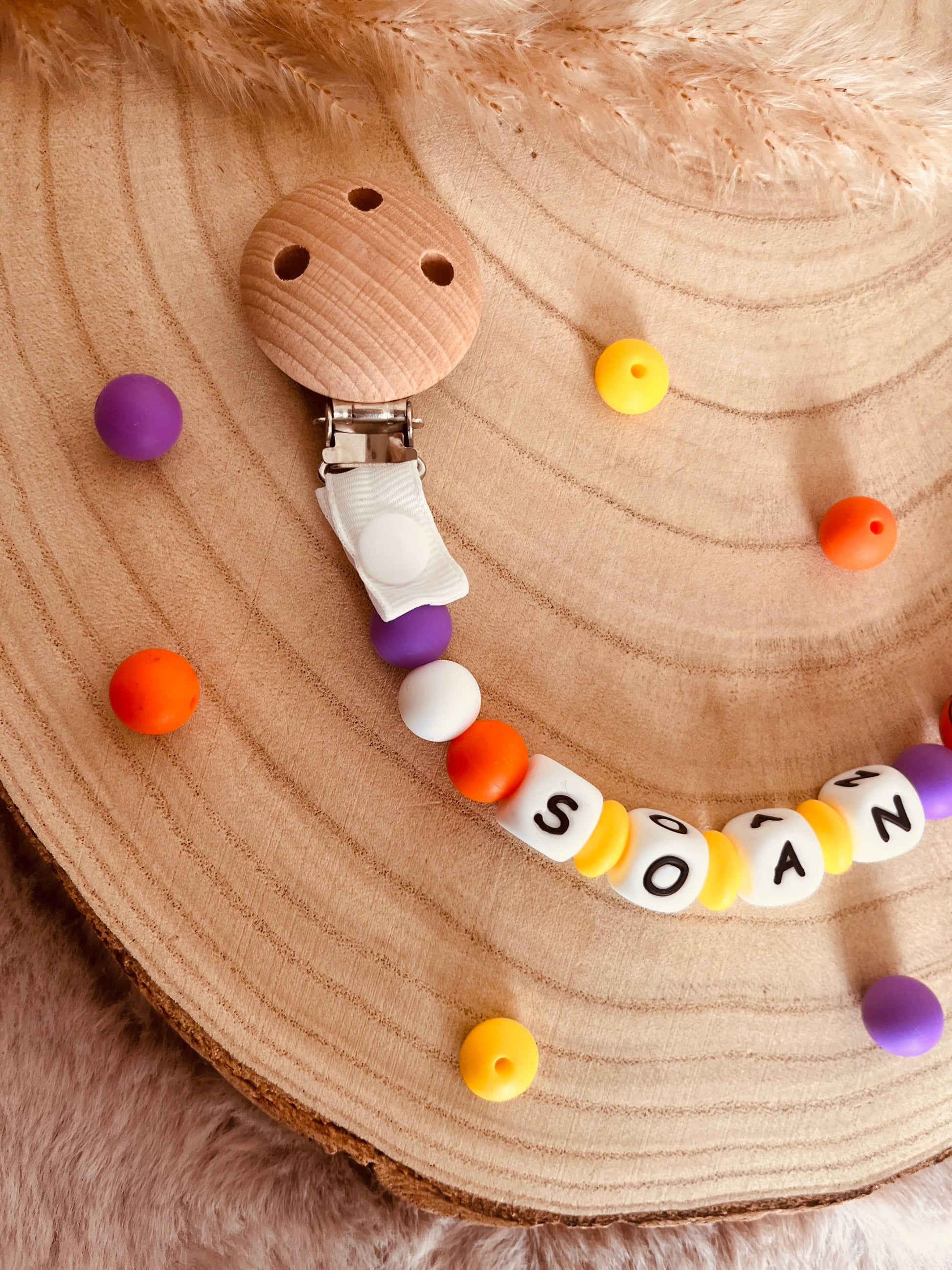 Nossos prendedores de chupeta são feitos à mão em nossa oficina usando materiais seguros para crianças.