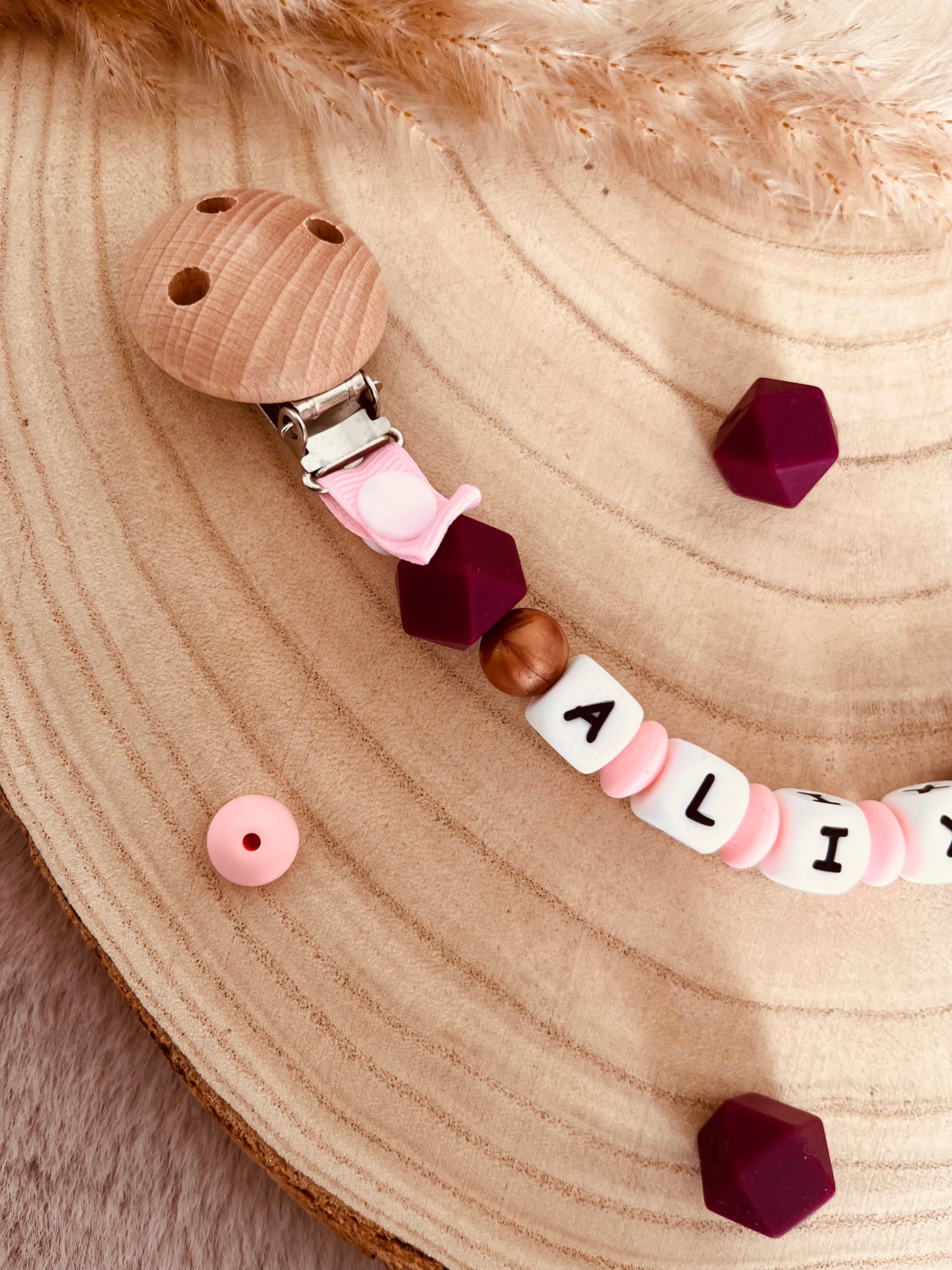 Nossos prendedores de chupeta são feitos à mão em nossa oficina usando materiais seguros para crianças.